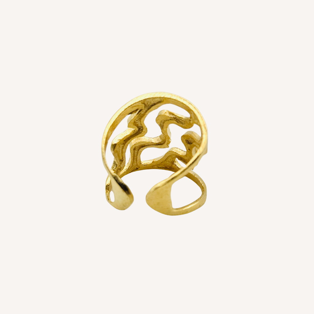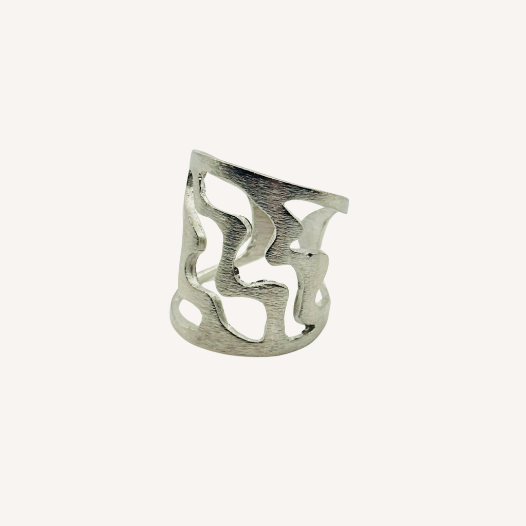 Softly brushed textures reflect light like the sun dancing across ocean waves, while the open cuff design allows for an easy, comfortable fit. Effortlessly modern and endlessly wearable, the Shoreline Cuff Ring brings a refined coastal edge to everyday styling and elevated looks alike.