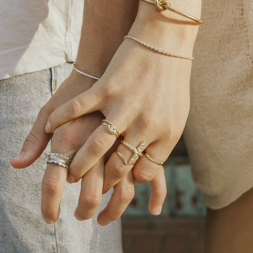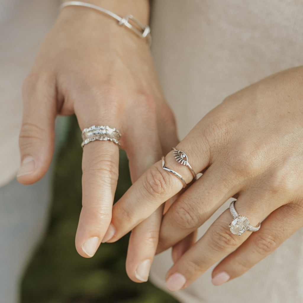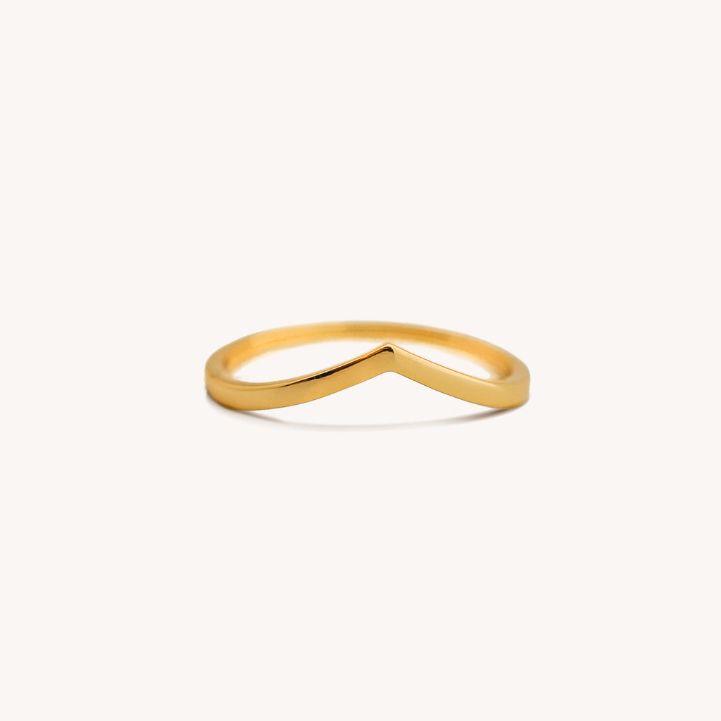Add a touch of elegance and meaning to any outfit with our Chevron Ring. Embody strength and love with the minimalist V design, a symbol that stands the test of time. Designed for versatility, this ring is perfect for stacking and can be paired effortlessly with our Eye of Protection Ring.